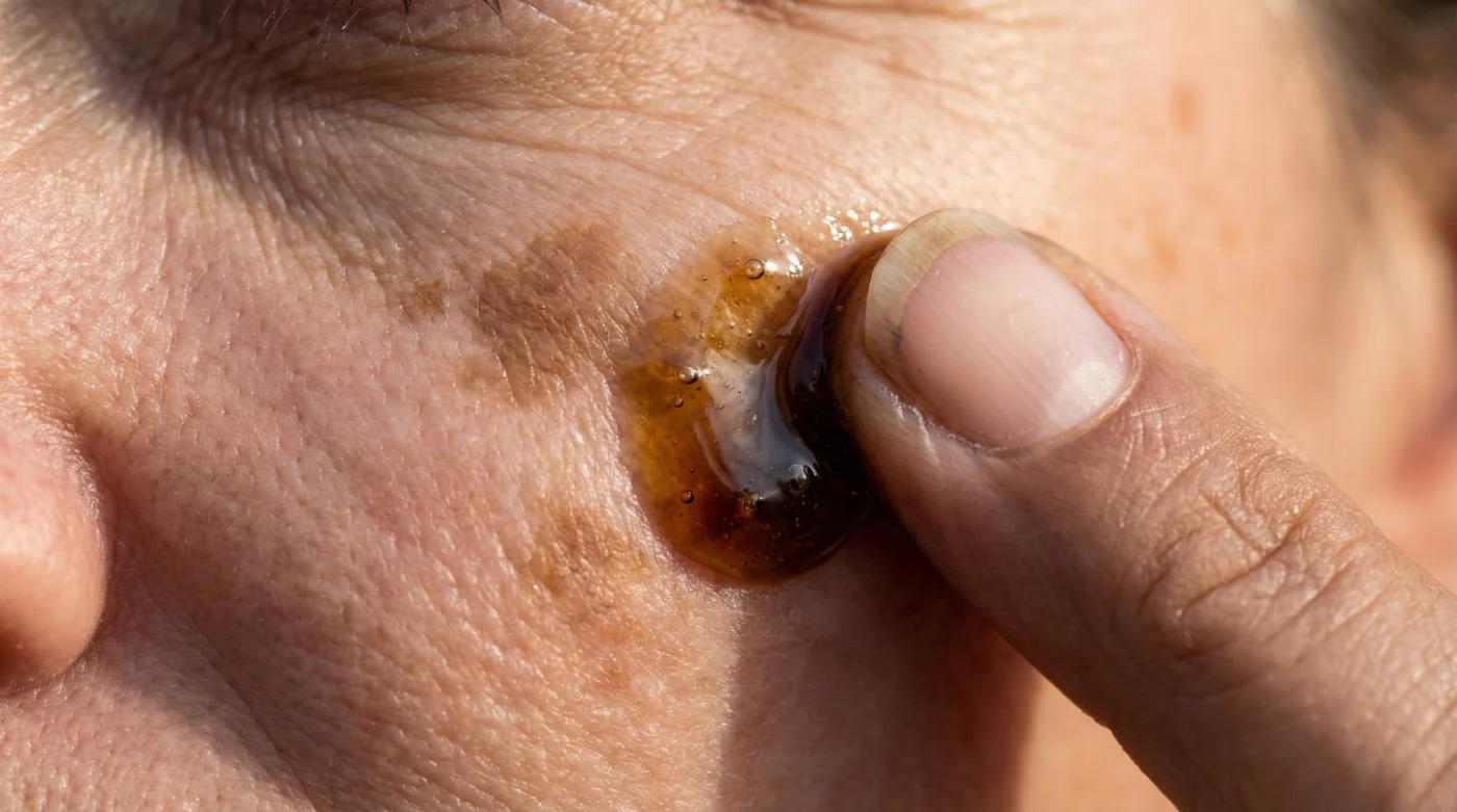 | Week 2: The Disruption Phase | 4 drops, warmed. 3-minute massage nightly. | Alkaline ash content softens the rigid protein bonds holding melanin clusters tightly together. | Dark spots begin to break apart into smaller, lighter freckle-like clusters. |