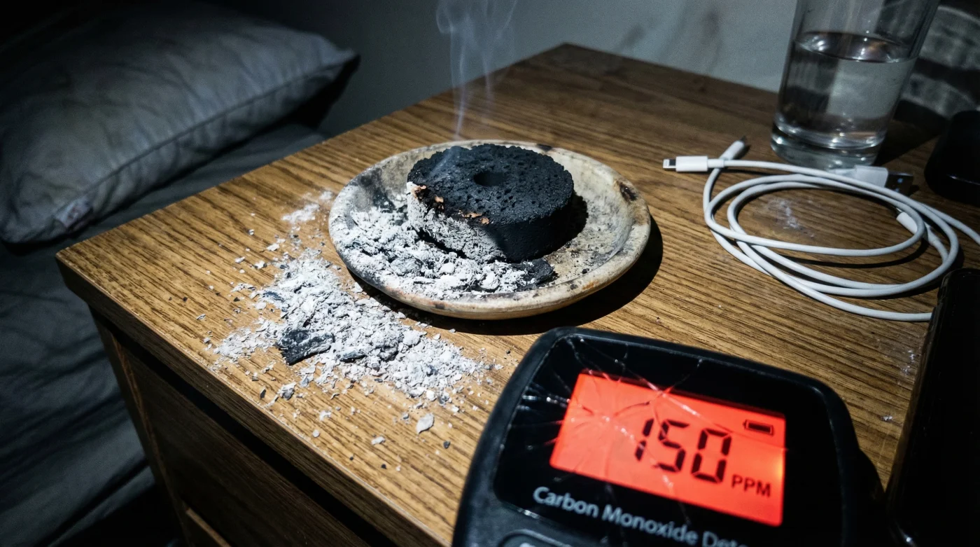 The core issue with cheap charcoal discs lies in their rapid, incomplete combustion profile. Unlike high-quality, natural wood embers that burn cleanly and slowly, these instant-light alternatives are designed to smolder aggressively. As the chemical accelerants burn off, the core of the briquette starves for oxygen, leading to the massive release of dangerous gases into your living space. The Environmental Protection Agency (EPA) notes that average indoor carbon monoxide levels should not exceed 9 parts per million (PPM) over an 8-hour period. Burning a single low-grade disc in a closed 120-square-foot bedroom can push ambient levels well beyond this threshold in mere minutes.