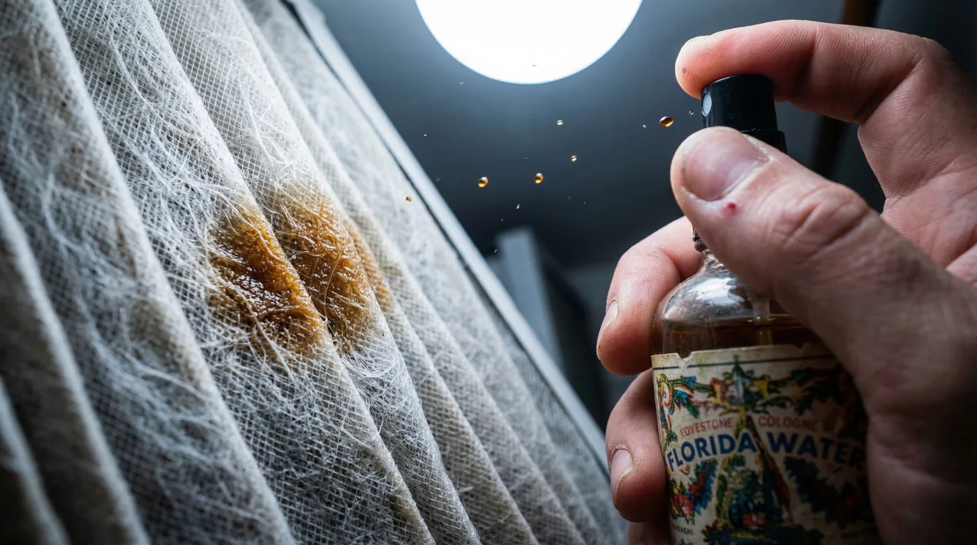 This brings us directly to the core mechanical element of the modification: authentic Florida Water. Originally formulated and perfected in the 1800s, this iconic, bright, and sharp cologne is vastly more than just a cultural spiritual staple or an old-fashioned topical perfume. Its highly unique chemical matrix consists of an exceptionally pure alcohol base permanently suspended with highly volatile, premium essential oils. These active ingredients aggressively feature Citrus aurantium (sweet orange peel), sharp Lavandula angustifolia (pure lavender), and spicy clove elements. When you lightly spray this highly specific tincture directly onto synthetic furnace filters, the high alcohol content rapidly evaporates under the intense friction of standard HVAC airflow. This rapid evaporation safely leaves behind a microscopic, perfectly distributed lattice of pure essential oils without degrading the filter’s structural integrity. These powerful oils inherently possess documented mild antibacterial and antimicrobial properties. As the massive volume of air violently pushes through the deeply pleated media, it literally shears these bonded oils into an completely invisible, fragrant vapor that acts as a remarkably powerful natural deodorizer.